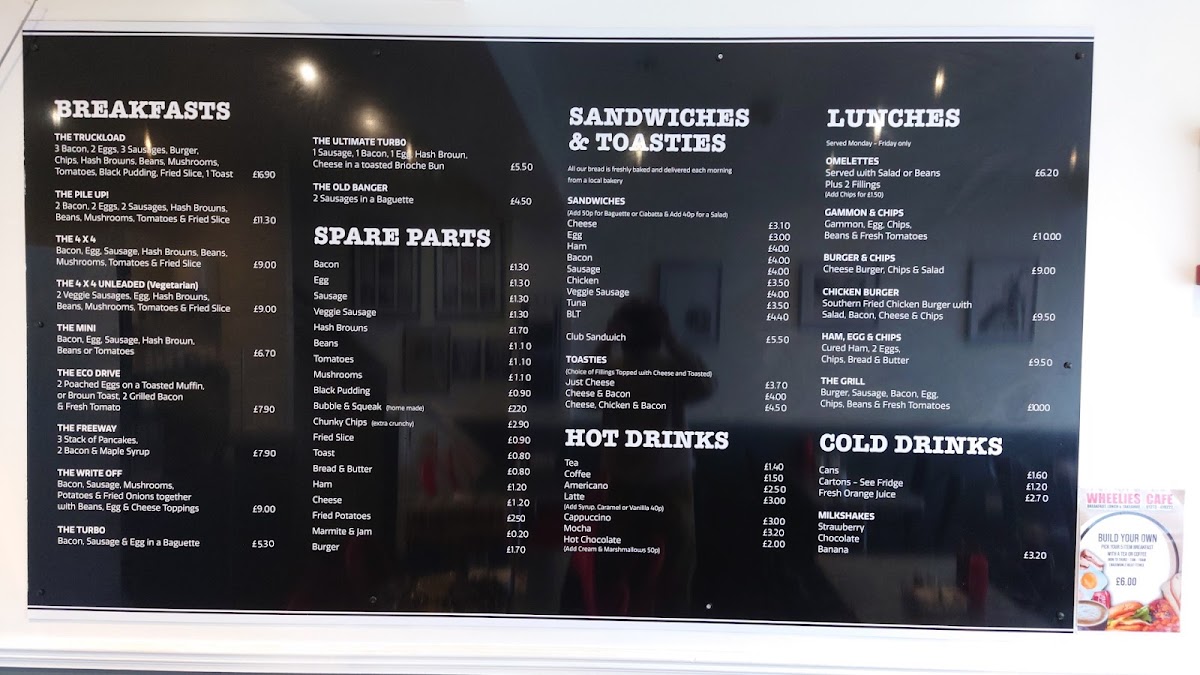 Welcome to Wheelies Cafe, the gem nestled on Victoria Road in Brighton and Hove, where hearty meals meet a vibrant atmosphere. The menu is a delightful blend of classic comfort foods designed to satisfy all appetites. Start your day off right with their enormous breakfast offerings, featuring the superb pile up and truckload breakfasts that consistently receive rave reviews from customers like Lillanna Hills and Valeriy S. Each dish is presented beautifully and served piping hot, ensuring a warm welcome for your taste buds.